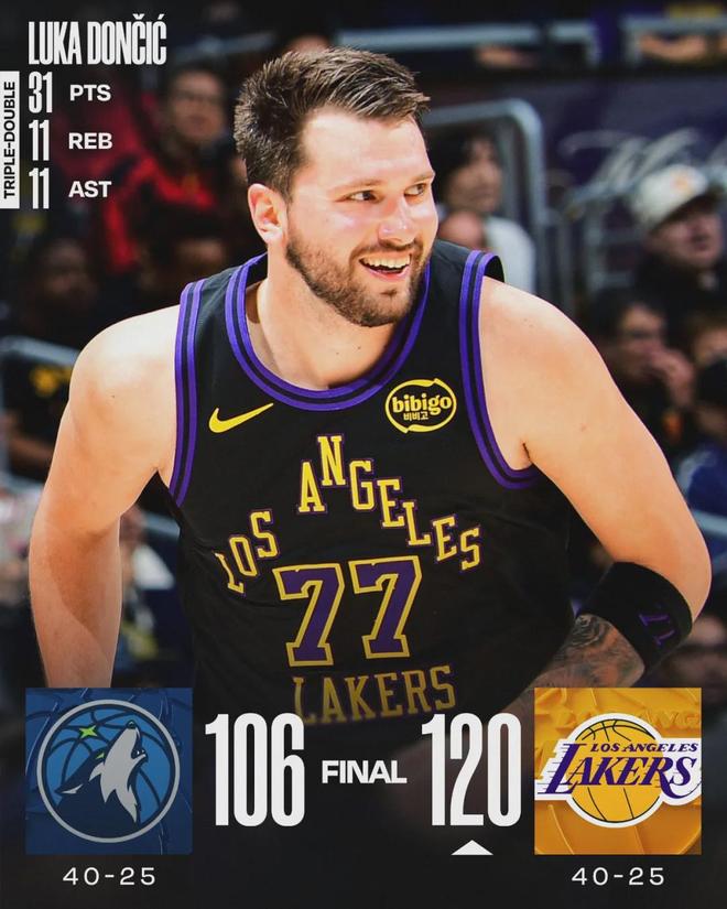 北京時間3月11日,NBA常規賽,湖人120-106擊敗森林狼。詹姆斯因傷繼續休戰,東契奇和裡夫斯合砍62分。此役過後,西部排名發生不小的變化:森林狼40勝25負,從西部第3跌至第5;湖人同樣40勝25負,從西部第5升至第4。