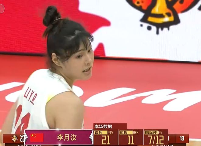 全場比賽,李月汝替補出場,打瞭20分鐘,投籃12中7,砍下瞭21分11籃板1助攻1搶斷的兩雙數據,其中,得分和籃板球都是排在全隊第一。毫無疑問,李月汝就是中國女籃贏球的關鍵先生。